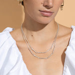 Cette chaîne est formée de maillons fins et simples ainsi que de tiges d’argent sterling texturé. C’est un collier est assez discret pour ne pas trop attirer l’attention, mais simplement souligner ce que tu portes et ajouter une petite touche féminine.