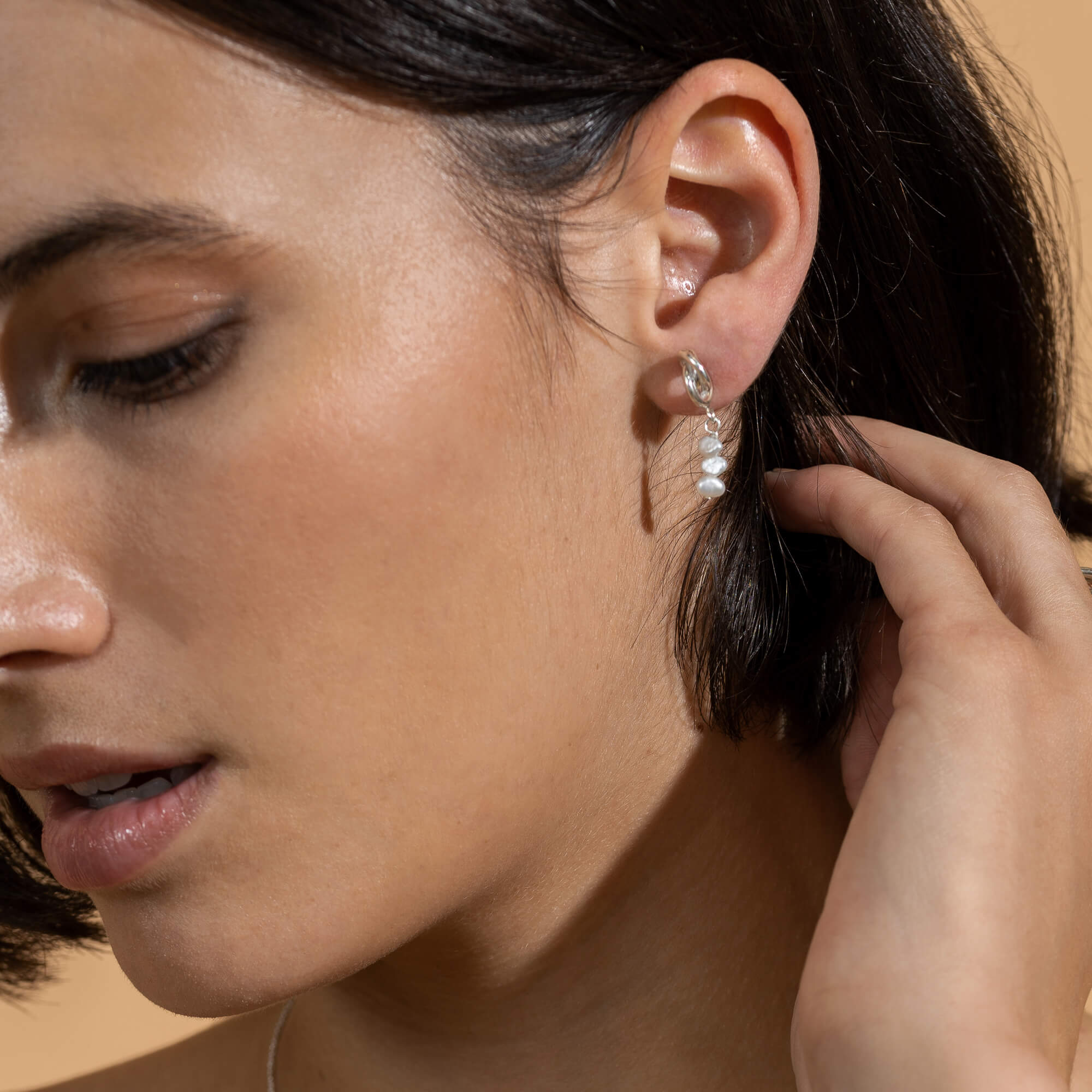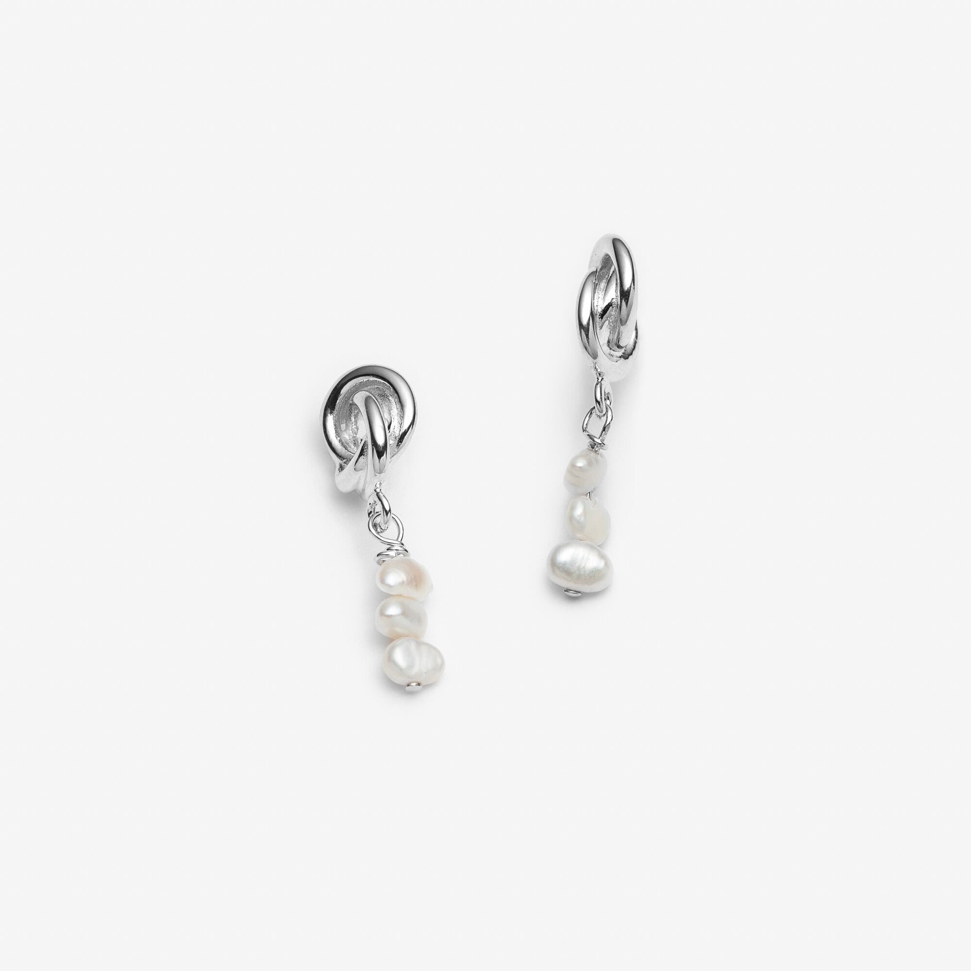 Construites comme de petits nœuds, ces boucles d’oreilles sont formées de fils d’argent sterling qui s’entrelacent. Pour un look plus simple, choisis la version de base. Si tu cherches un look un peu plus chic et festif, choisis la version à laquelle est accrochée une breloque de 3 perles baroques.