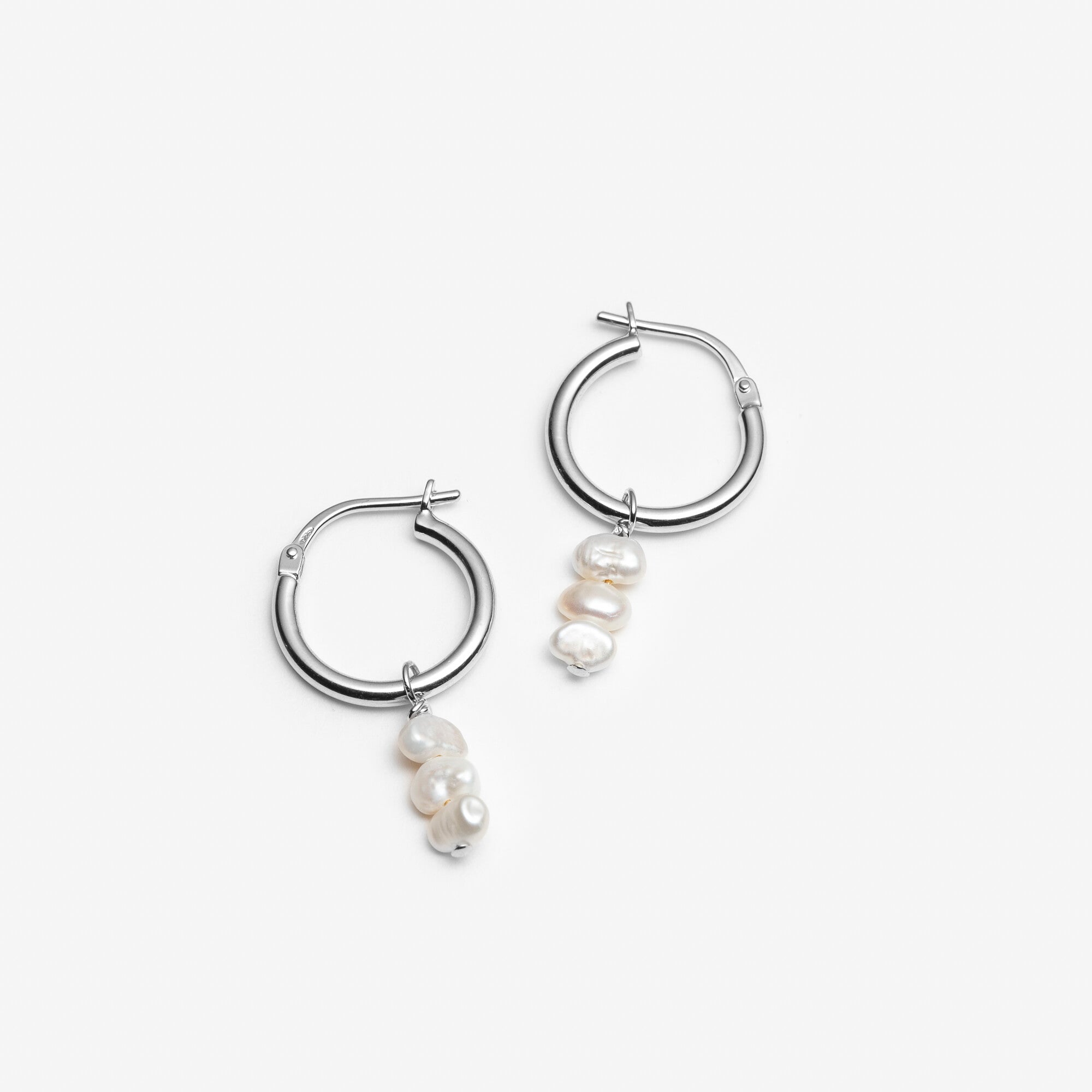 These earrings are made of sterling silver and baroque pearls. Both strong and feminine, they fit your mood. The hoops can be worn alone or with a 3-pearls charm. You can go from a simple everyday earring to something a little more chic for a special occasion.