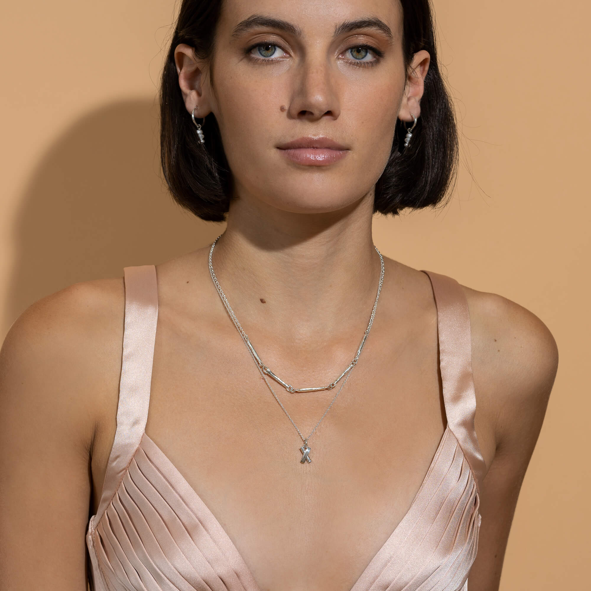 The earrings are available in sterling silver or 14k yellow gold-plated sterling silver and can be paired with the Dévouée necklace.
