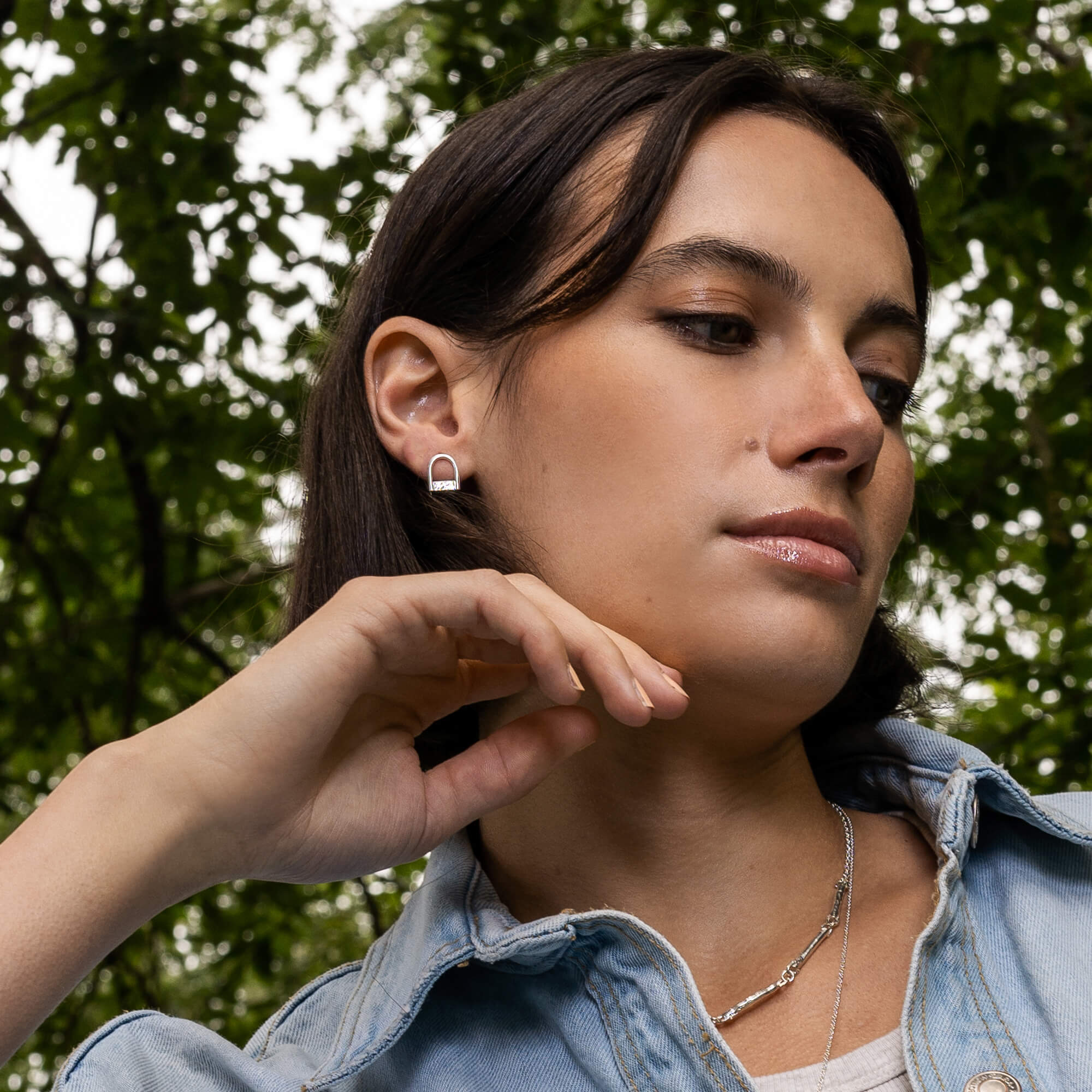These upside down U-shaped earrings may remind you of a window shape if you use your imagination. It's fitting, because it's named Open Minded. Mixing two textures of sterling silver, they stand out despite their simplicity.