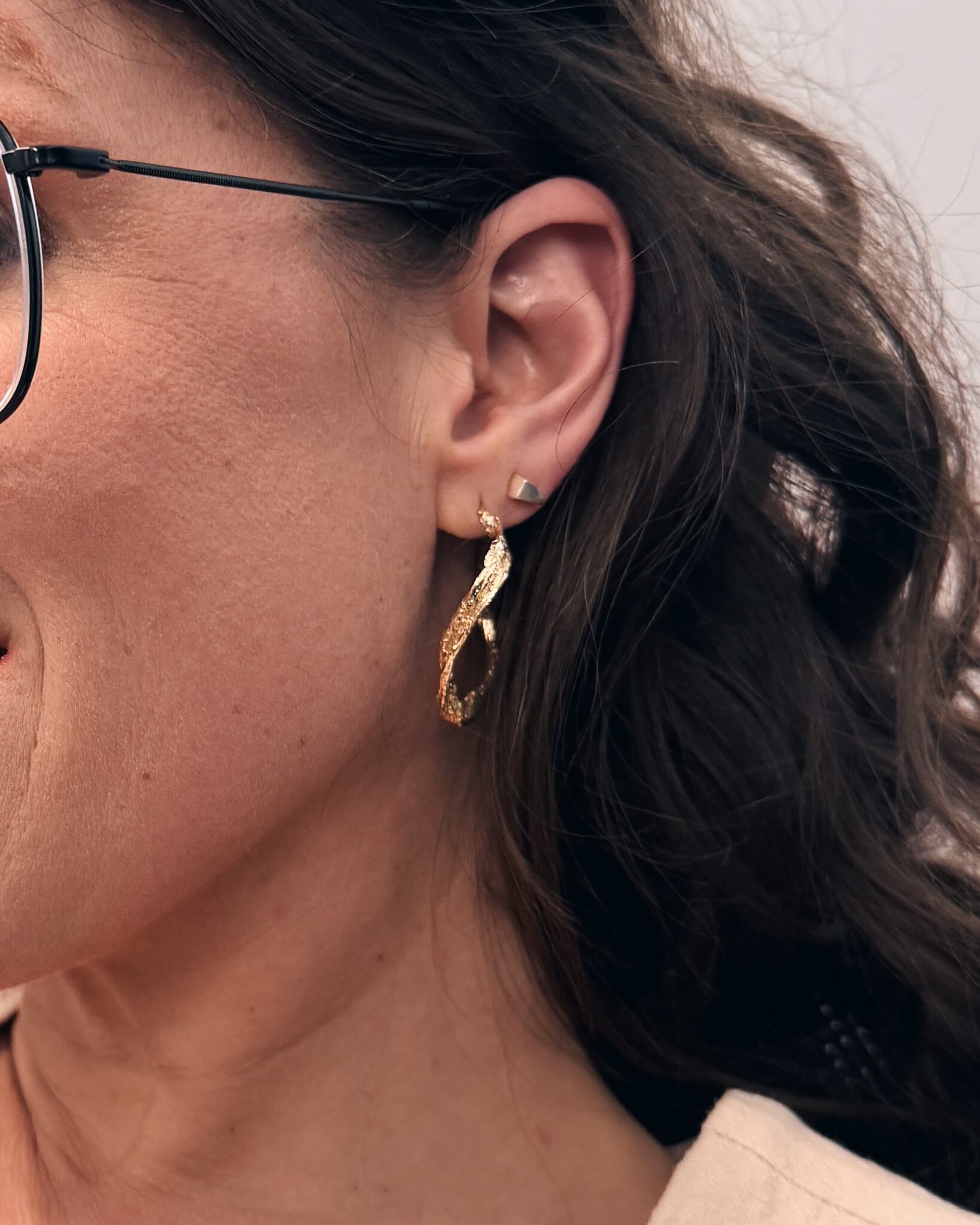 Each pair of Émilie earrings is handcrafted in Quebec, available in sterling silver 925 or 14k yellow gold-plated sterling silver.