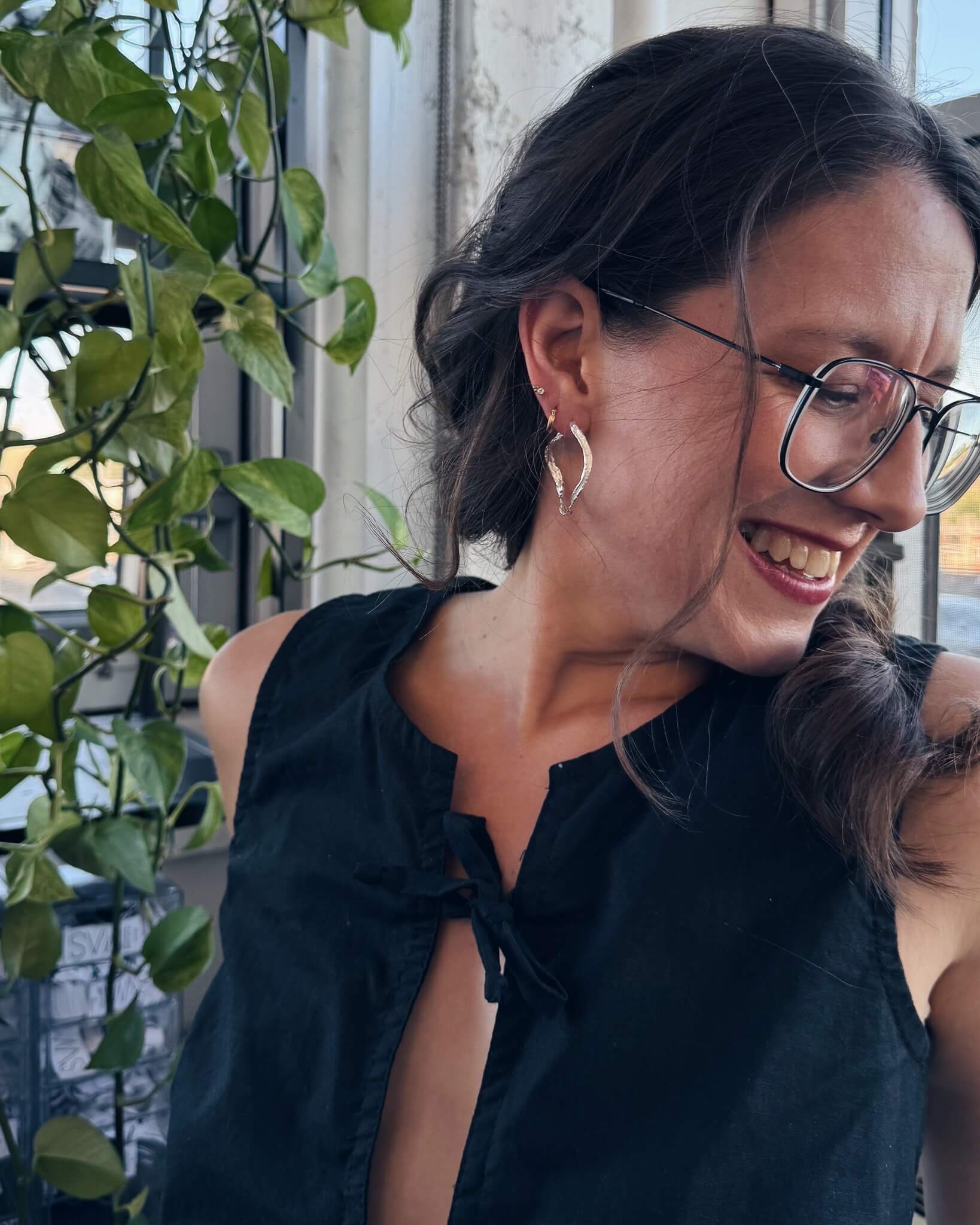 These hoops are proof that a playful, spontaneous idea can become something extraordinary. Émilie celebrates friendship, creativity, and the joy of turning every spontaneous idea into a unique and radiant statement.