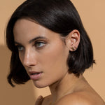 If you have more than one piercing in your ears, you can also add the Determinée Earrings in the same shape but a little bigger and with the option of a pearl charm, to create a nice variation in size.