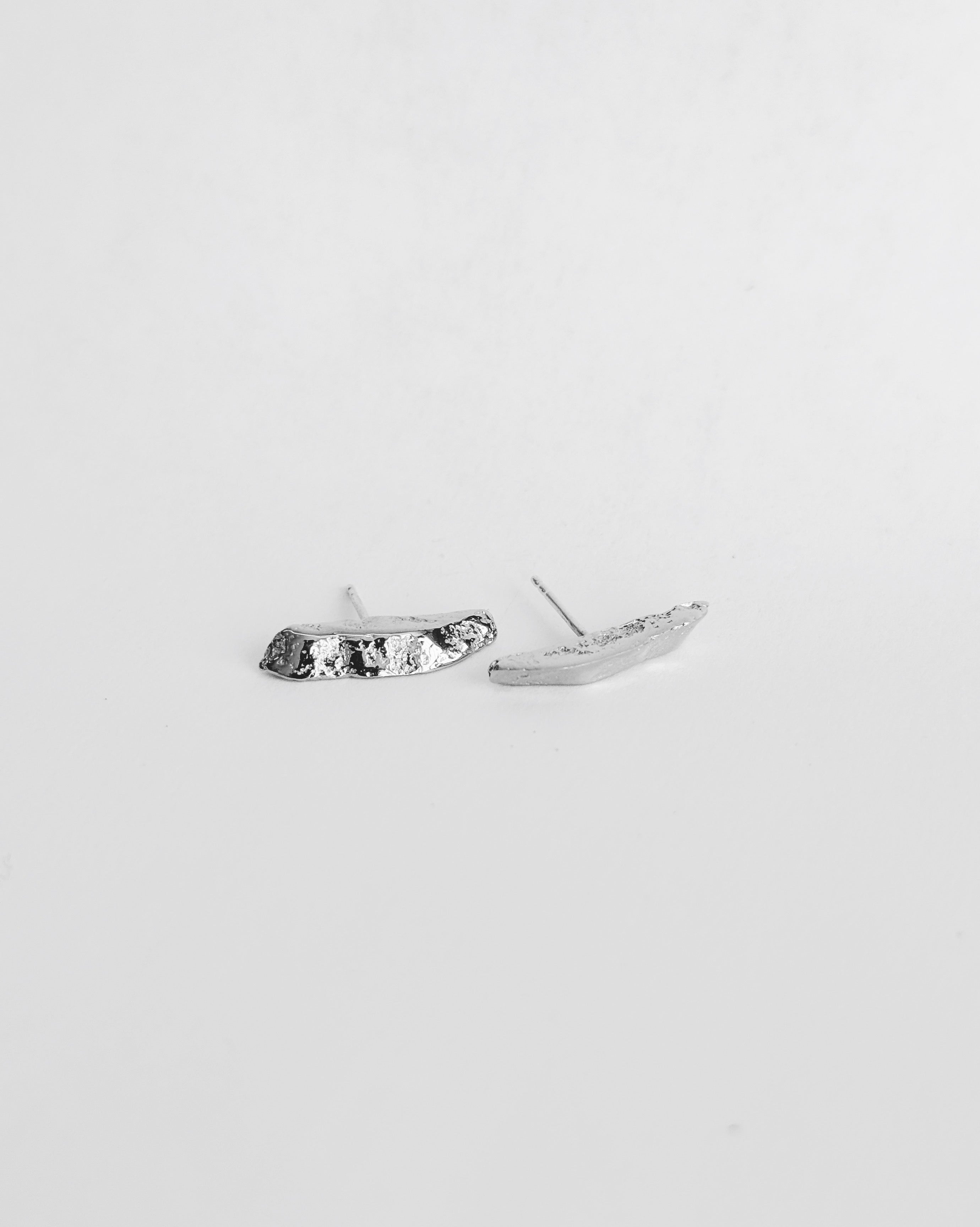 These ear climber earrings are handcrafted from a slice of dried banana cast in sterling silver, preserving the unique texture and natural details.
